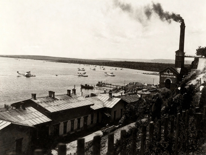 In tandem with the Tsarska, several Bulgarian motorboats set out towards the seaplanes anchored at the landing buoys, poised for the arrival of the final 31 Italian planes, ready to soar over the city in unison.