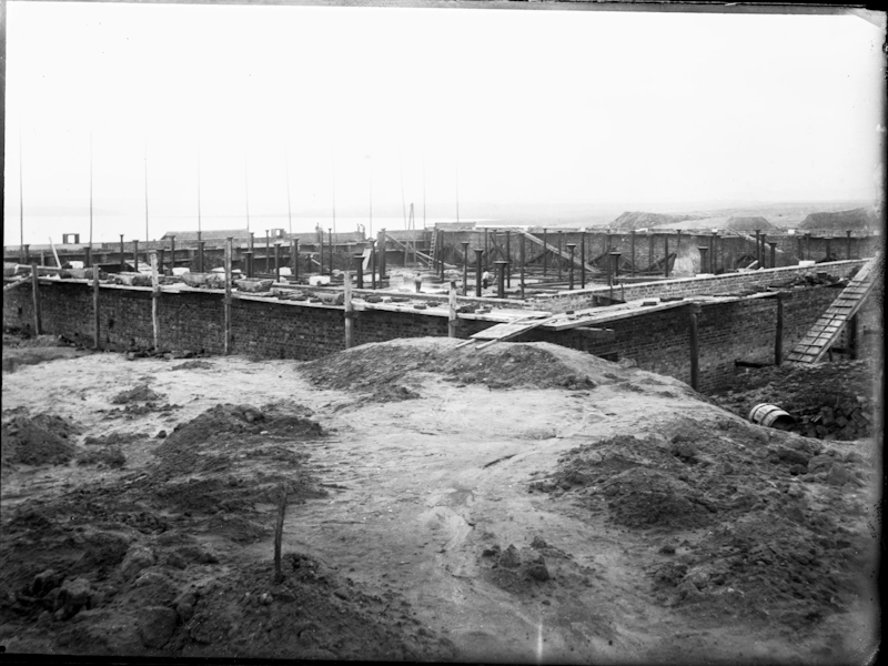 The construction of the factory is executed through a series of sequential stages. During the latter half of the 19th century, the primary manufacturing section was constructed, encompassing various facilities such as warehouses and a steam plant featuring a chimney, among others. In the following years, there were extensions and the construction of supplementary structures. The red bricks utilised in the construction of the buildings were sourced from England.